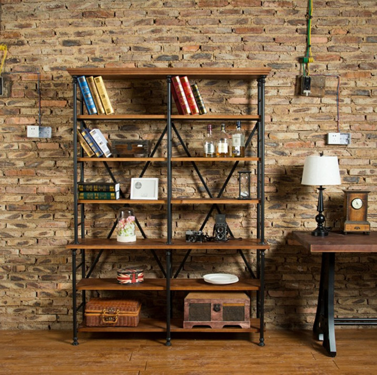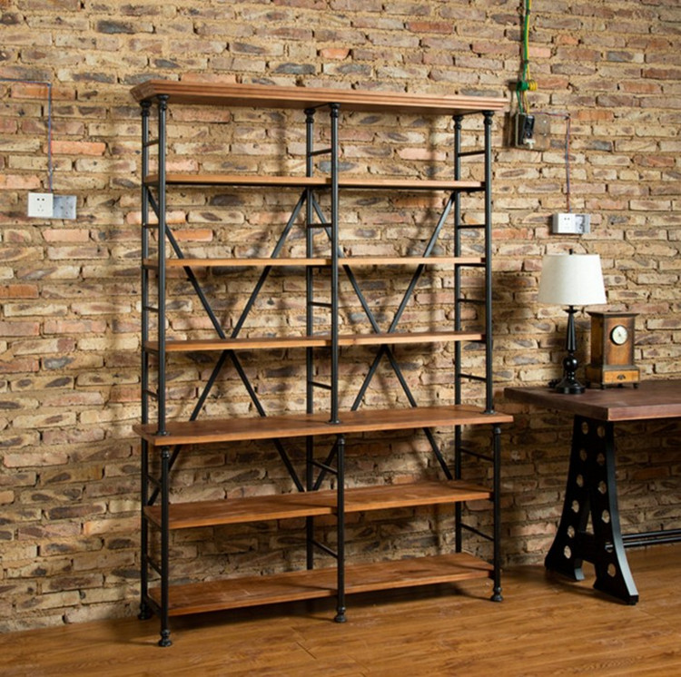 American country style wrought iron old shelf iron wood sideboard display rack storage rack retro bookshelf