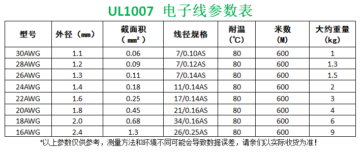ULAmerican1007AWG16 18 20 22 24 26 28 30 electronic wire 80 ℃ single core wire tin copper