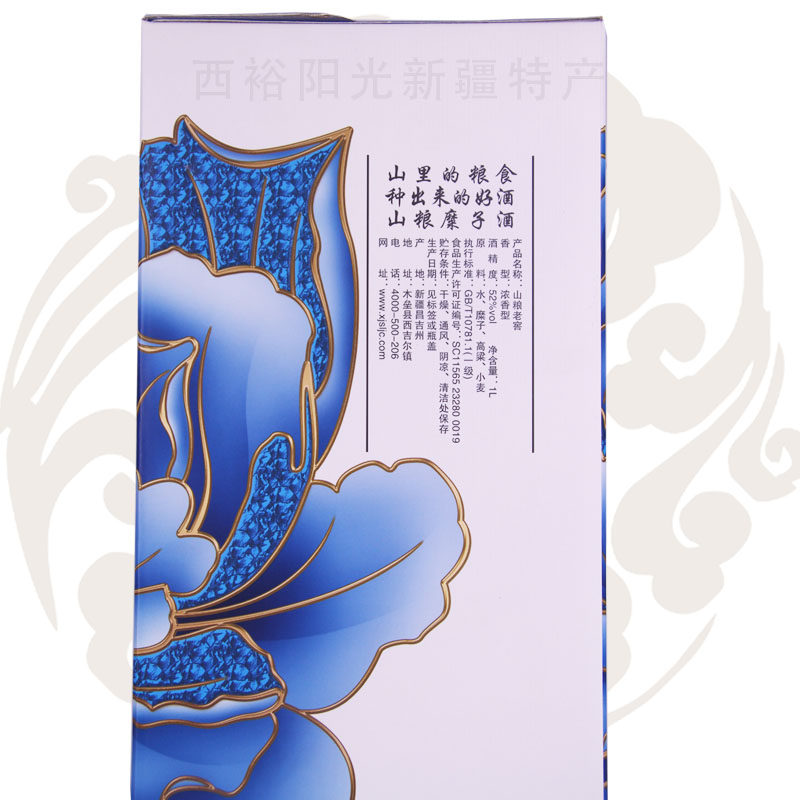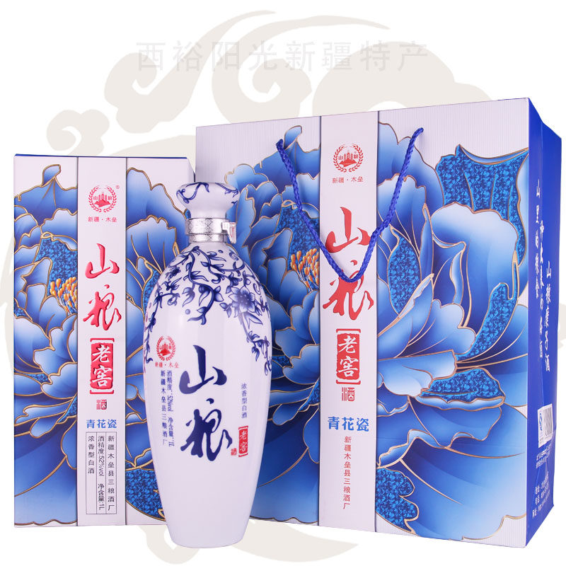 Xinjiang liquor wood barricades Mountain grain rice wine Mountain grain wine Mountain grain old cellar green flower porcelain 52 degrees 1L loaded with strong aromatic white wine grain wine