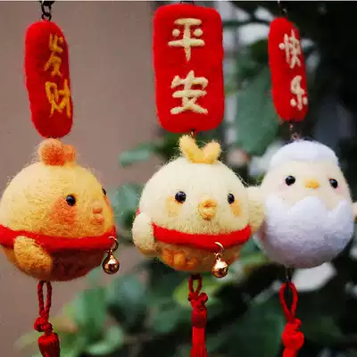 New wool felt wool felt hand-entry material bag Zhaocai chicken Ping An small yellow chicken car pendant Gong Xia Fa Cai