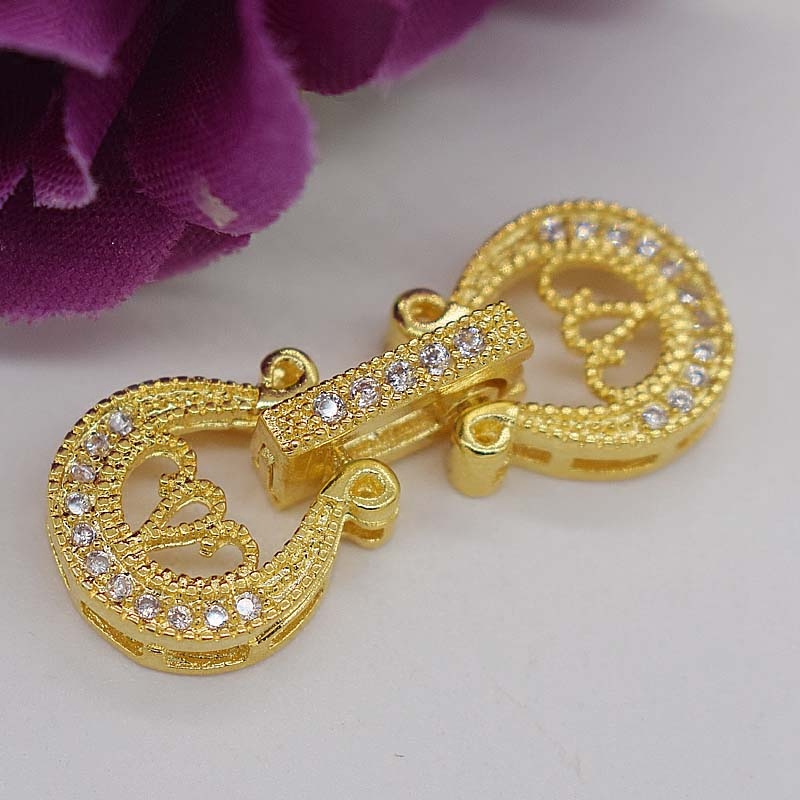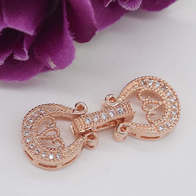 925 semi-silver gold-plated diamond-studded pearl necklace buckle single and double row multi-breasted buckle DIY handmade material accessories