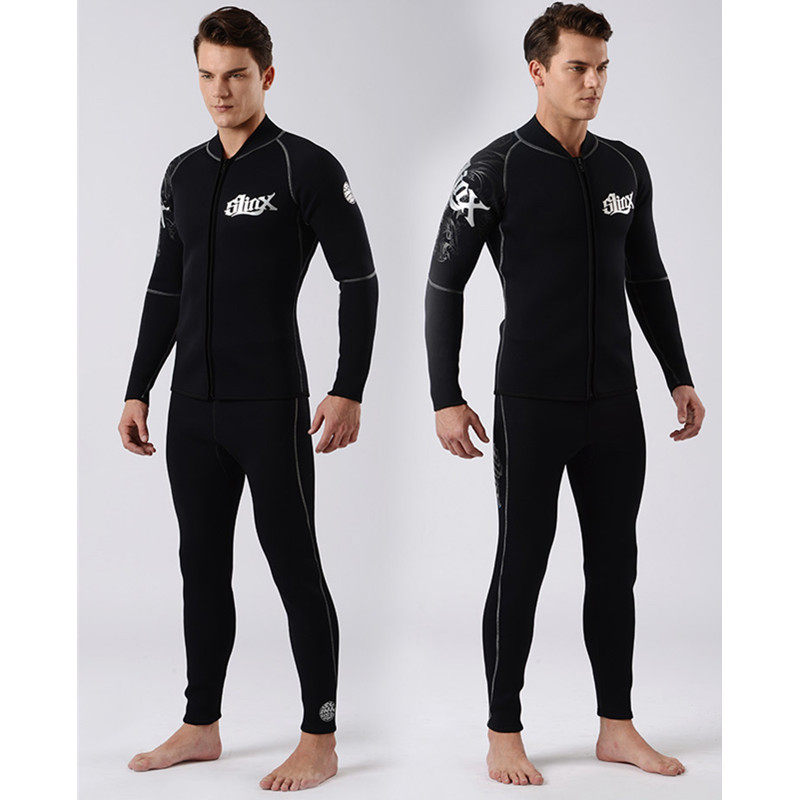 Black jacket 3mm thick 3mm thick trousers 5MM jacket cuffs with laced section 5mm jacket cuffs no pull-up 5mm long pants