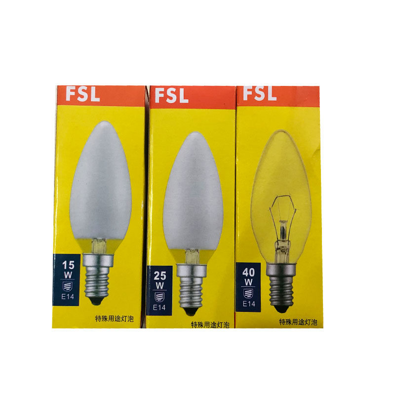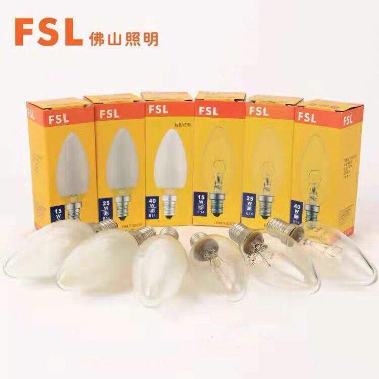FSL Foshan lighting small screw with white incandescent bulb E14 small mouth candle-shaped sharp bubble 15W25W40W transparent frosted