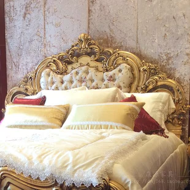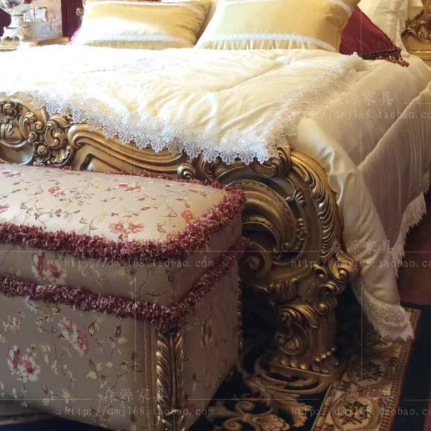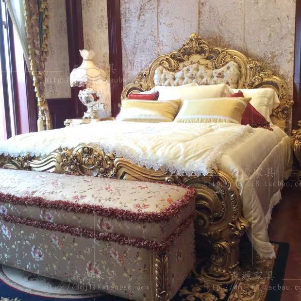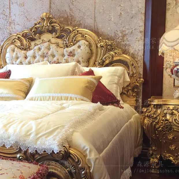 European-style furniture double bed solid wood carved bed French court bed 18 meters princess bed luxury gold wedding bed