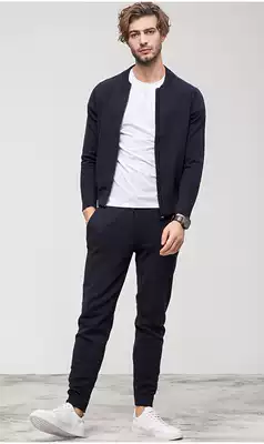 Business autumn new product 95%cotton 5%cashmere knitted sweater men's slim casual sports suit DAZ379