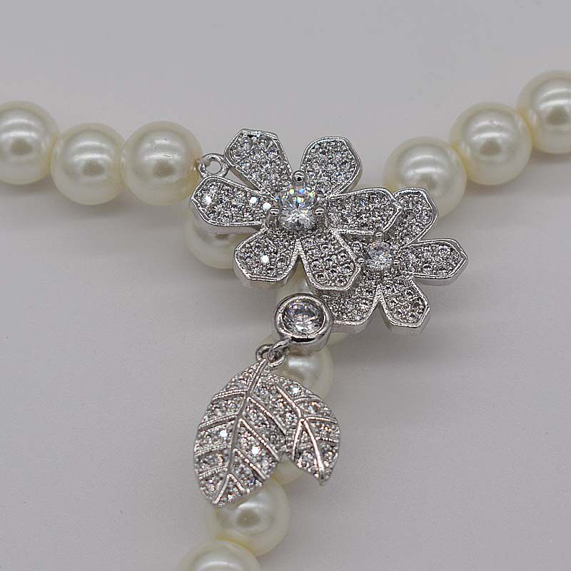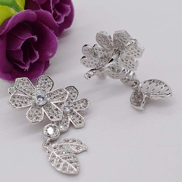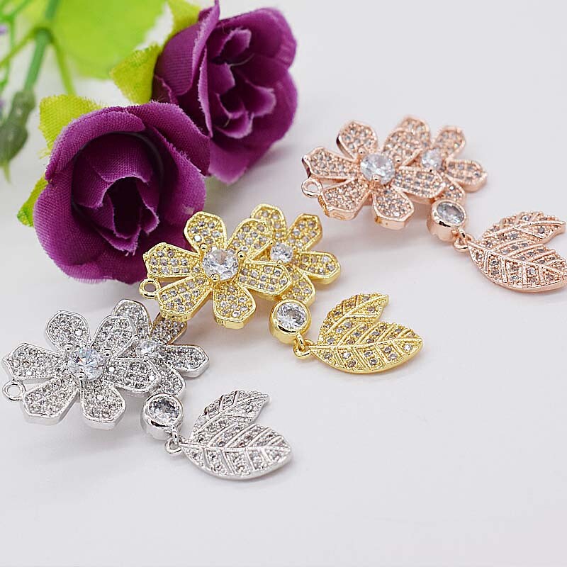 925 Silver Button Accessories Pearl Necklace Clip Double Layer Necklace Button Fixed Interlayer Leaf Flower Button
