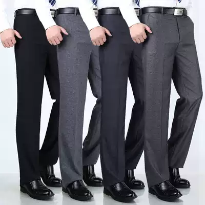 Middle-aged and elderly men's trousers Business formal trousers Middle-aged dad's clothing autumn and winter loose high-waisted straight thick pants