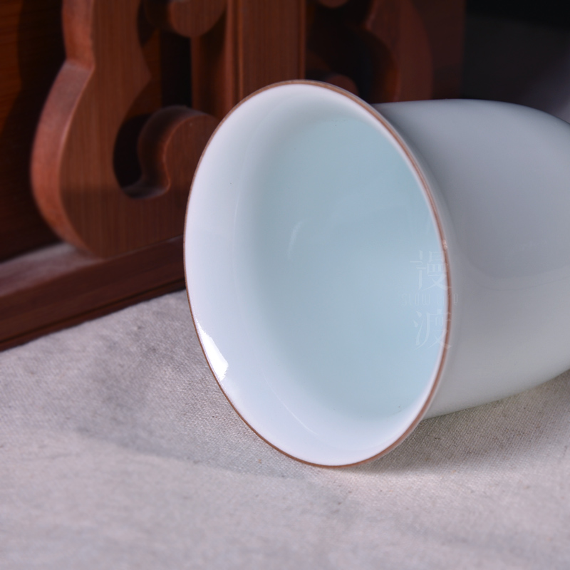 Shadow blue and white mouth cup sacrifice blue glaze Fat white glaze