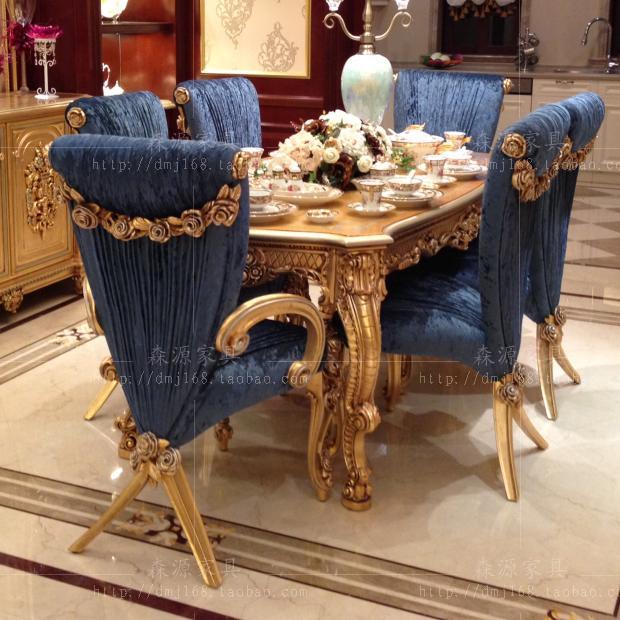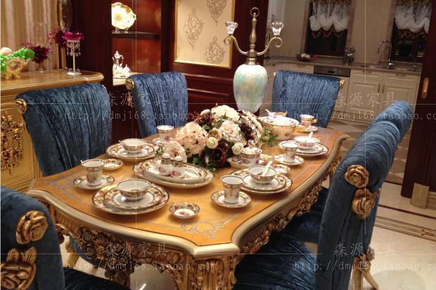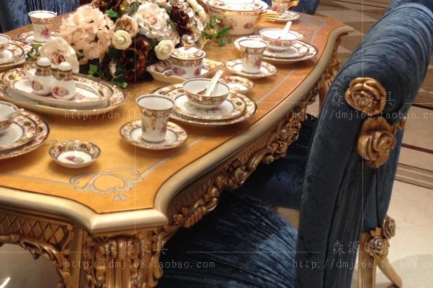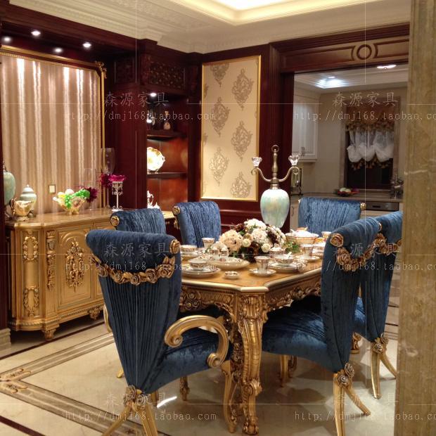 European dining table and chair combined solid wood carved flower rectangular dining table Italian court dining room soft packed dining chair
