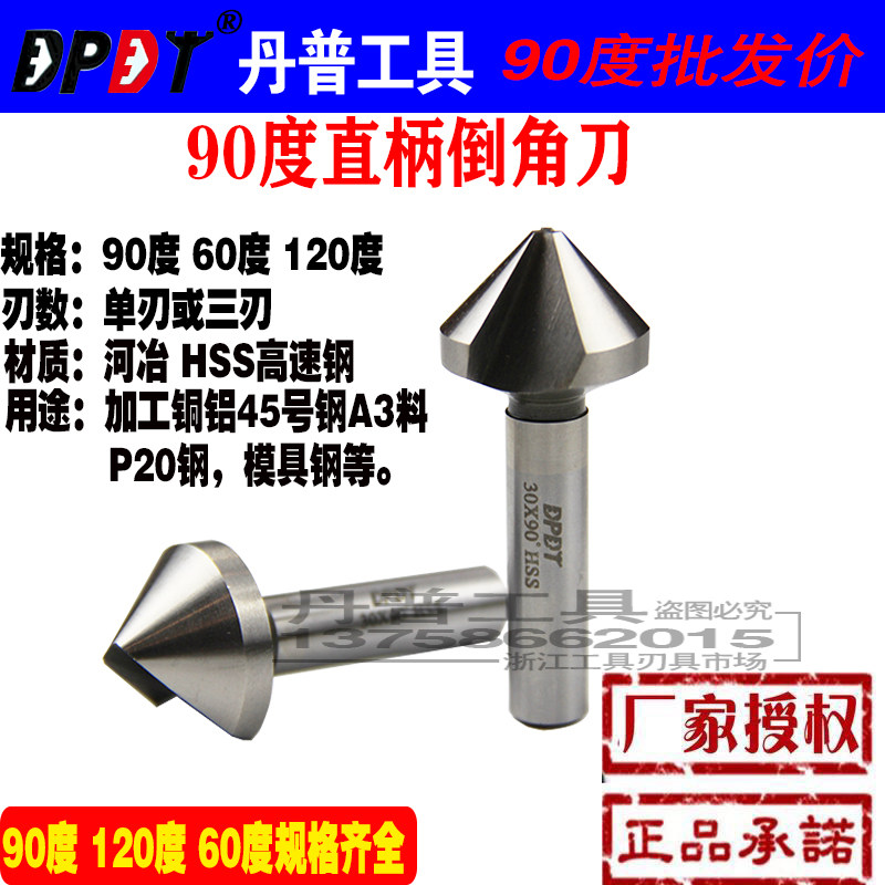 90 degree straight shank chamfering knife Dampu countersunk head single-edged three-edged chamfering device Chamfering drill Countersink taper shank round hole 60 120