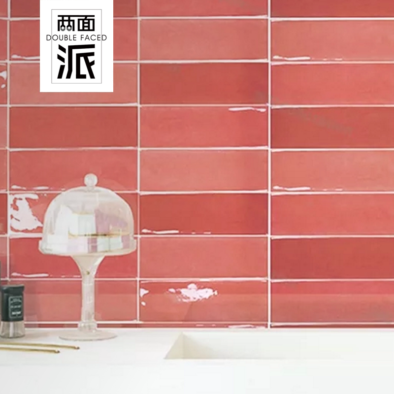 Net red pink personality wall brick simple bar tile kitchen powder room blue wall brick mold bright handmade brick