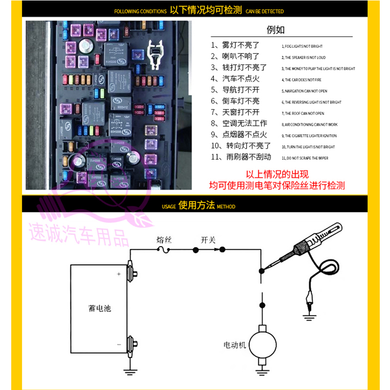 Car circuit wiring modification lighting fuse detection repair master 12V24V special LED bulb power pen