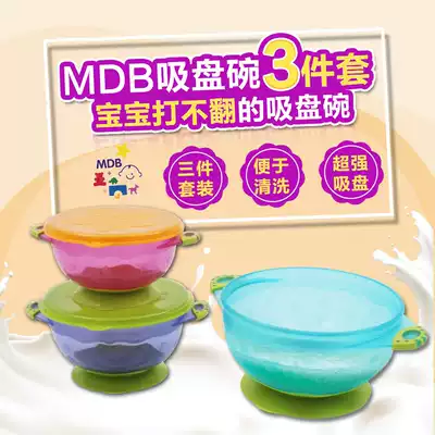 MDB baby suction cup bowl Drop-proof children's tableware three-piece set Baby eating bowl Non-food training bowl with lid Portable