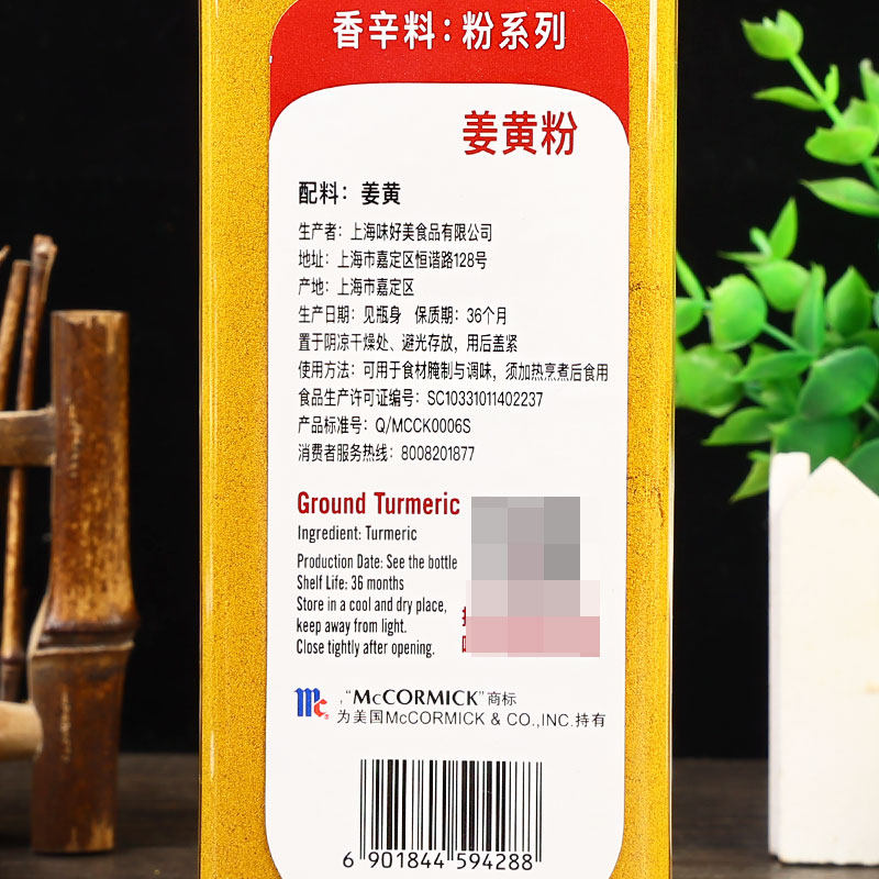 Turmeric is based on the actual information of the product's outer packaging