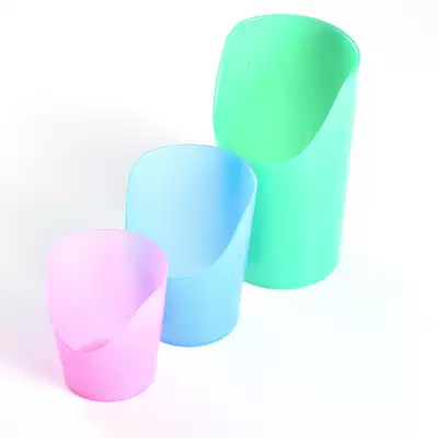 Small (50ml) pink large (250ml) green medium (100ml) Blue small size with handle 80ml large with handle 150ml 2 paper cups large 250