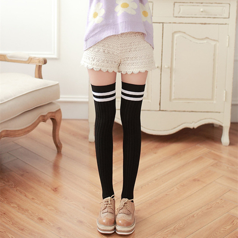 College style Japanese high tube socks Vertical stripes thin cotton knee socks Two bar socks Student female half thigh socks Female