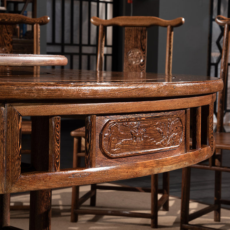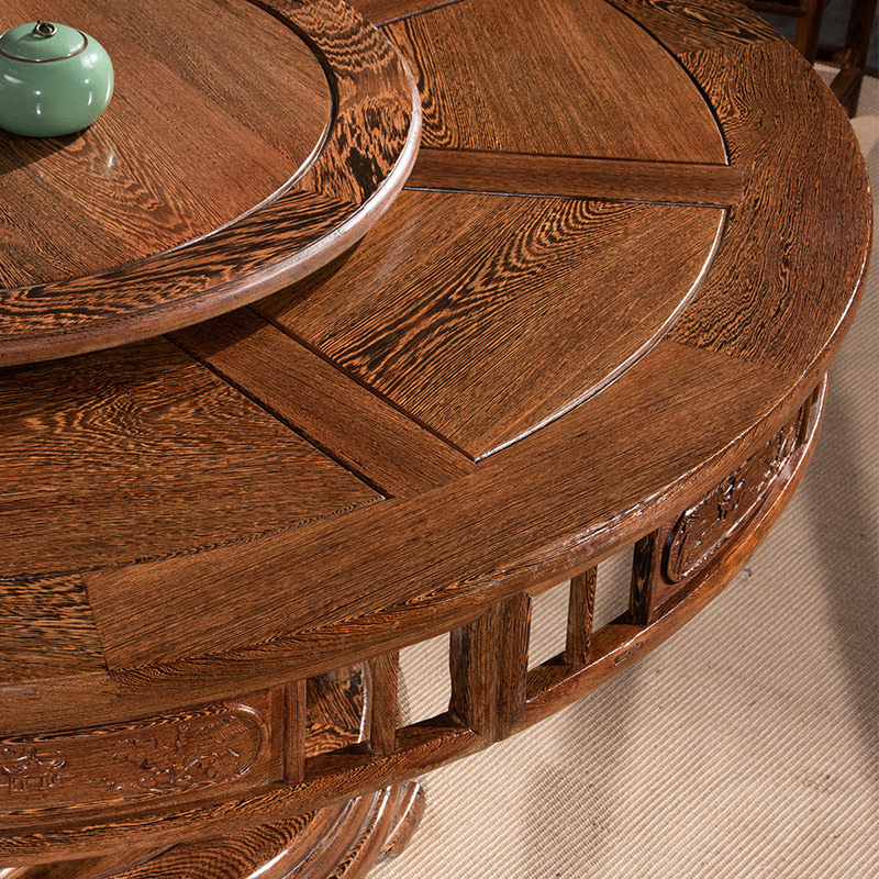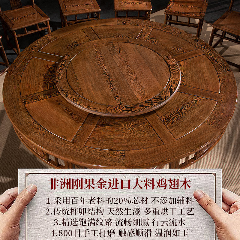 Chicken wing wood dining table round table and chair combination Chinese solid wood with turntable living room household round dining table mahogany furniture