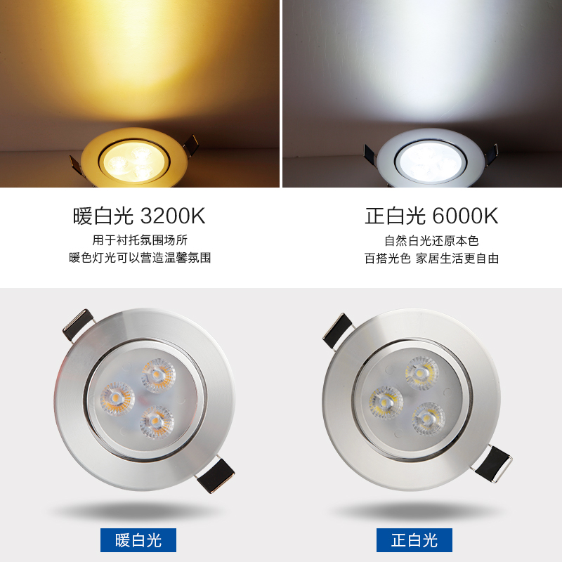 3w white light opening 6 5-7cm3w warm light opening 6 5-7cm5w White light opening 9-10cm5w Warm light opening 9-10cm7w White light opening