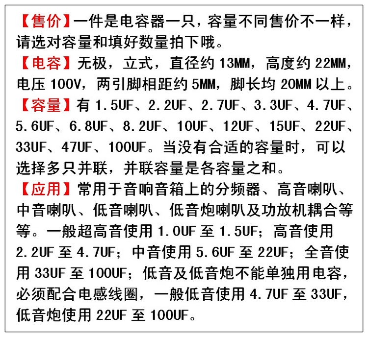 Electronic accessories Speaker speaker speaker divider capacitor Car audio high school low frequency electrodeless capacitor