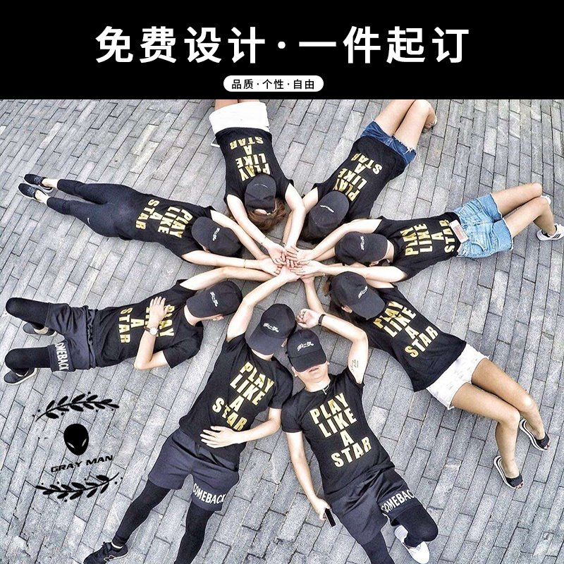 DIY Customised Summer Advertising Shirts Classmates Party Couple Banfu LOGO Printed Embroidery Round Collar New Frontier Cotton T-shirt