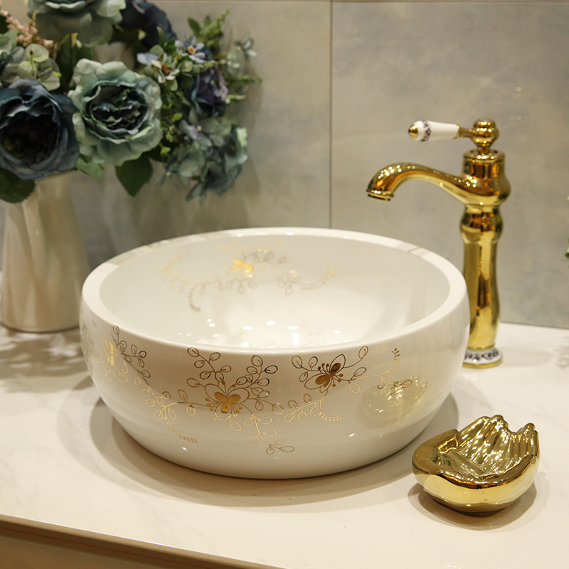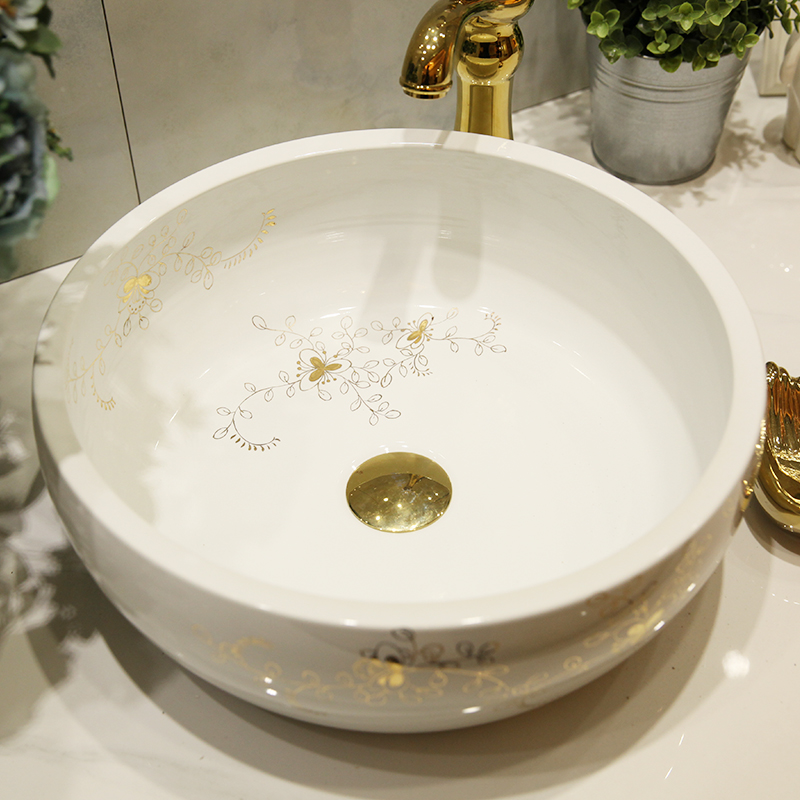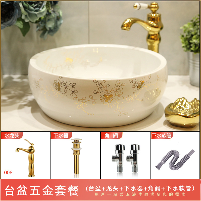 Wanjiao Taiwan pot ceramic bathroom wash basin basin art basin art basin hand painted gold flowers