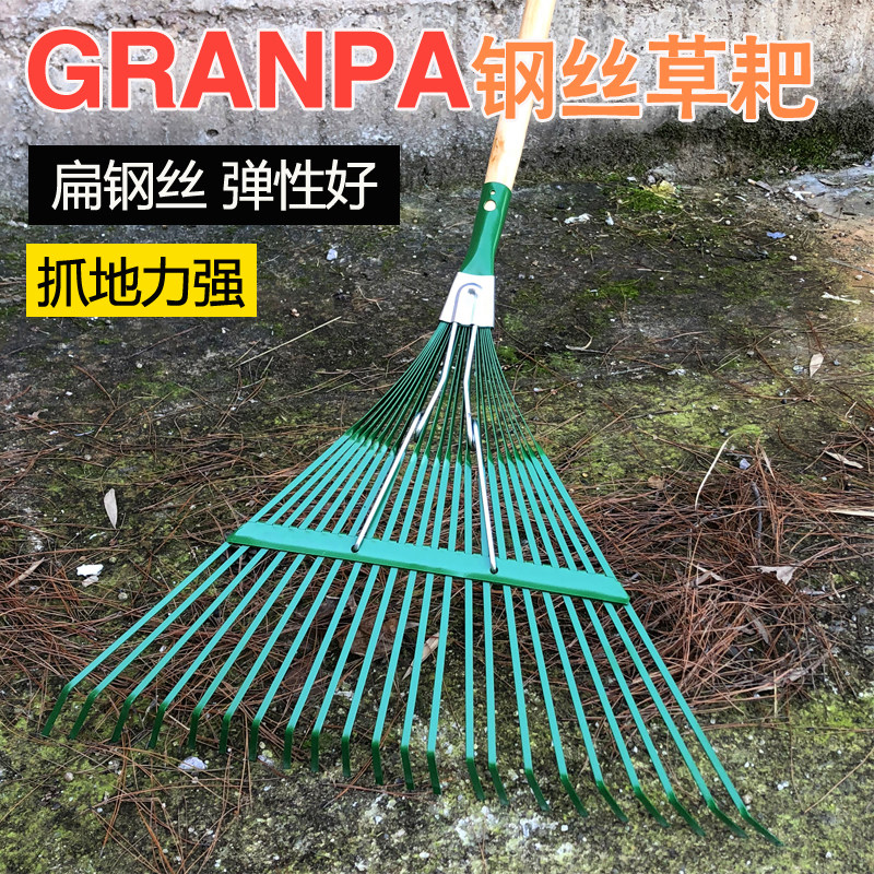 Gardening tools to pack up the leaves rake 22 teeth steel wire hugging rake wood handle Debris Rake Lawn Special
