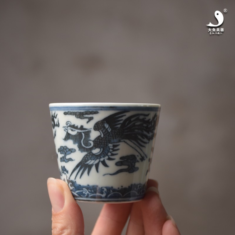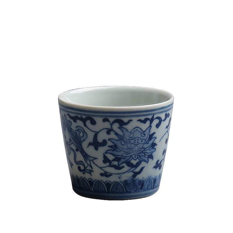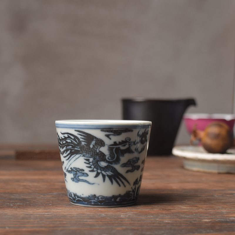 Tea Cup ceramic Jingdezhen retro old factory goods tea ceremony kung fu tea wine cup blue and white applique household tea cup single Cup