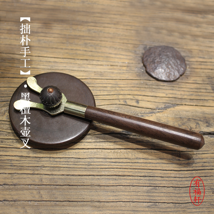 Pure copper pot fork cast iron teapot black sandalwood pot fork copper head pot clamp cast iron teapot special tea set accessories
