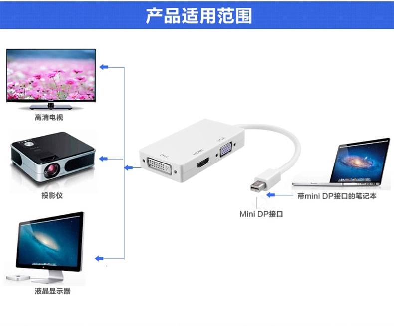 Apple notebook mini DP to VGA HDMI DVI converter three-in-one lightning interface