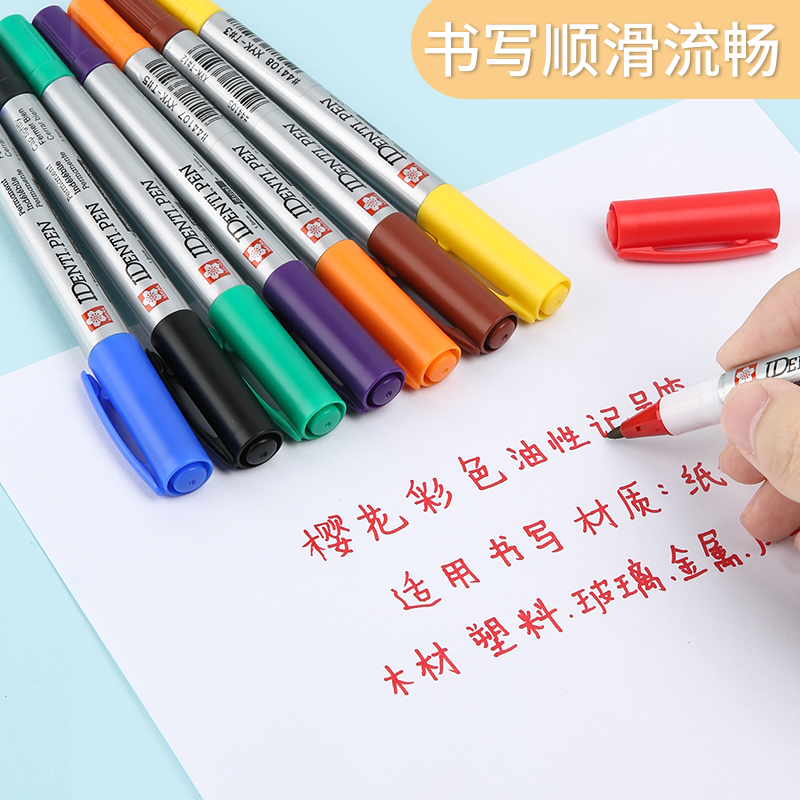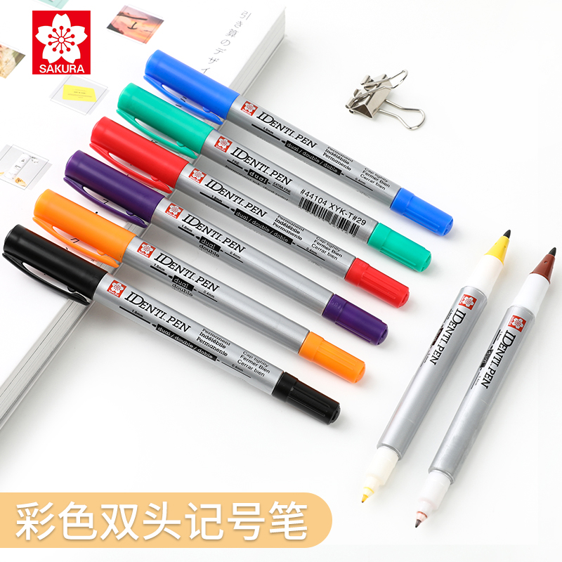 Japanese Sakura Sakura Blossom Small Two-headed Mark Pen Color Rough Students with Fine Heads Marking Oil No Color Water Resistance Dry XYK-T Oil Mark Pen Children's Tie Pen