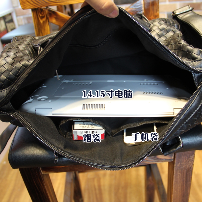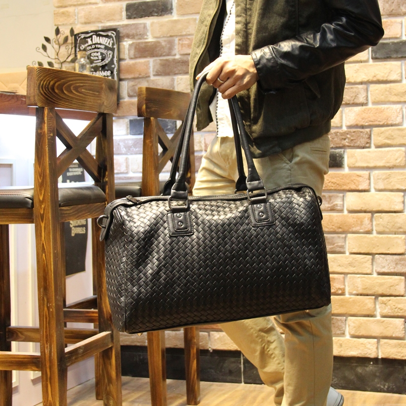 Hong Kong Genuine Leather Pure Handmade Woven Bag Men's Bag Retro Big Bag Handbag Carry-on Satchel Travel Bag Single Shoulder Bag