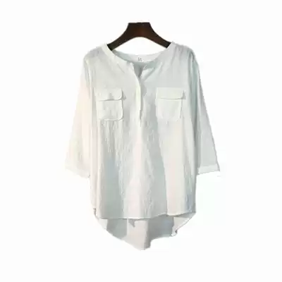 2020 spring Korean TH new solid color front short back long loose Korean fan seven-point sleeve pullover shirt female