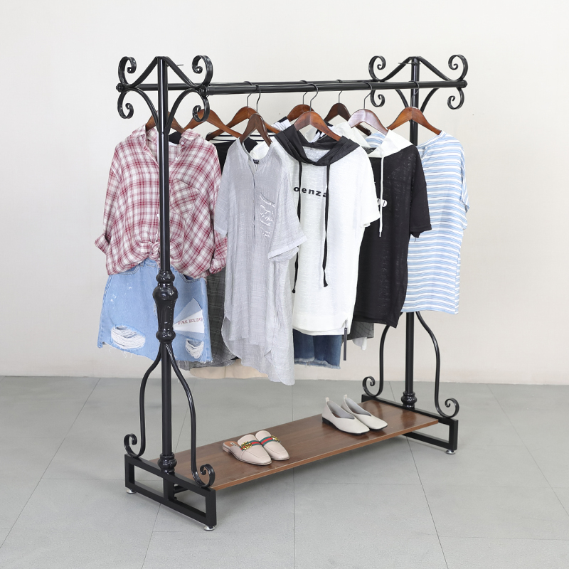 Iron clothing store display rack floor-to-ceiling clothes rack shop middle hanger display rack double row middle island rack