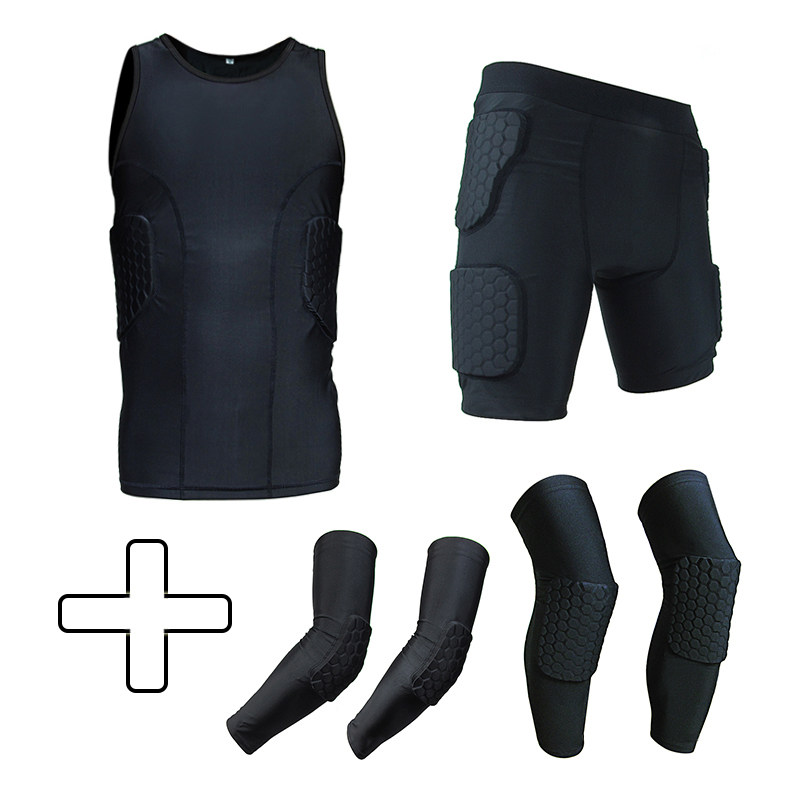 Black arm guard pair of anti-collision T-shirt Anti-collision vest Six-piece set of anti-collision T-shirt Six-piece set of anti-collision vest Black knee guard pair of anti-collision vest five-point pants White arm guard pair of anti-collision T-shirt five-point pants