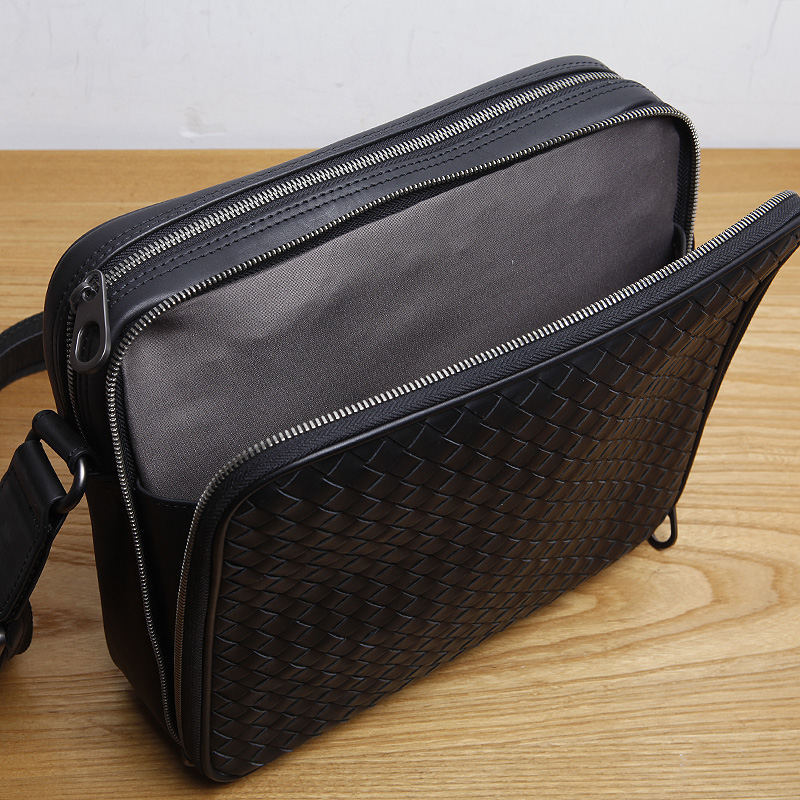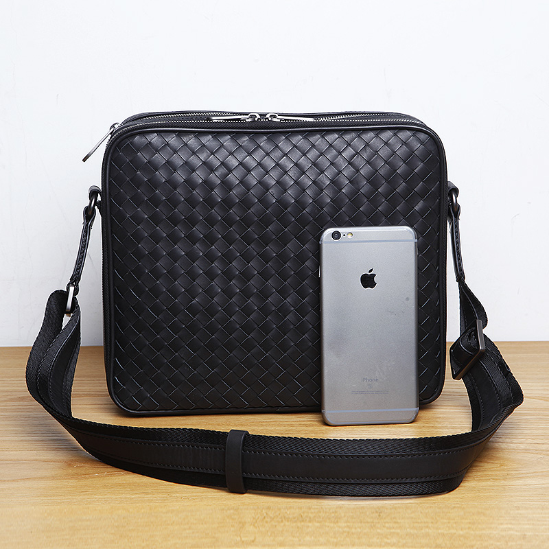 LANSPACE blue leather men's leather hand-woven bag fashion Korean leather diagonal bag shoulder bag