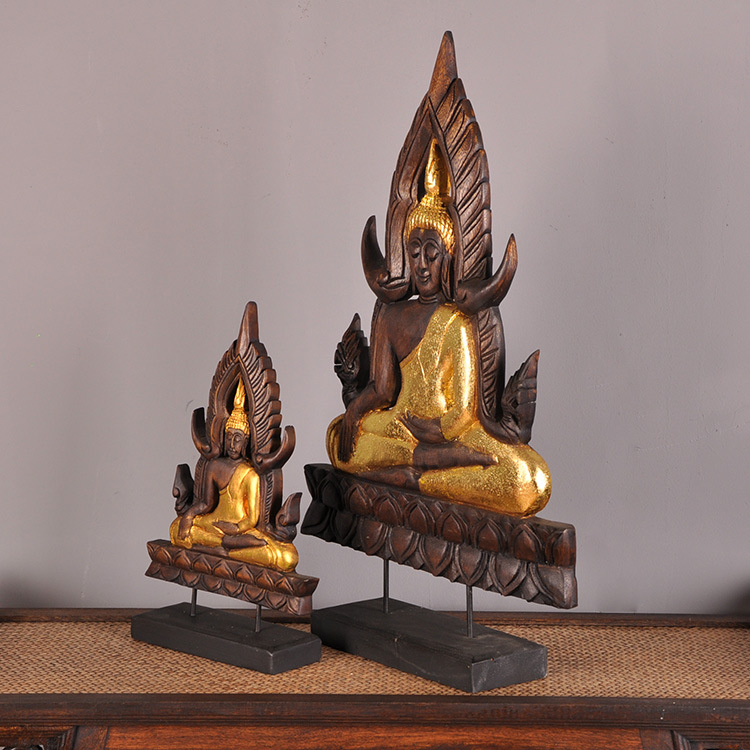 Southeast Asian style living room creative home accessories, masonry decorations solid wood carving Thai Buddha statue