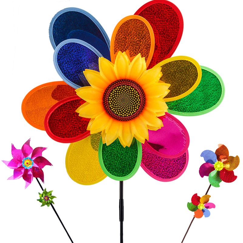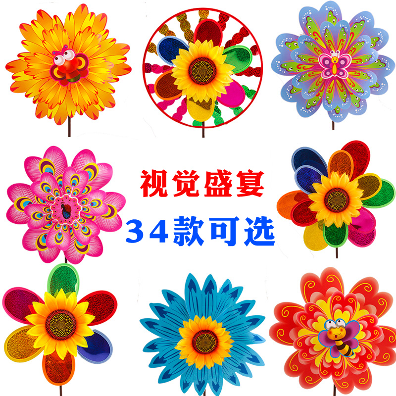 Six-wheel smiling face windmill cartoon windmill big sequins plus flower windmill large double-layer windmill three-wheel sun windmill three-dimensional windmill-mixed graffiti windmill 14cm colorful windmill upper and lower flower windmill double-layer sunflower windmill small