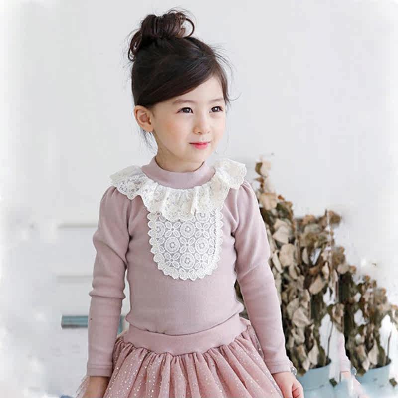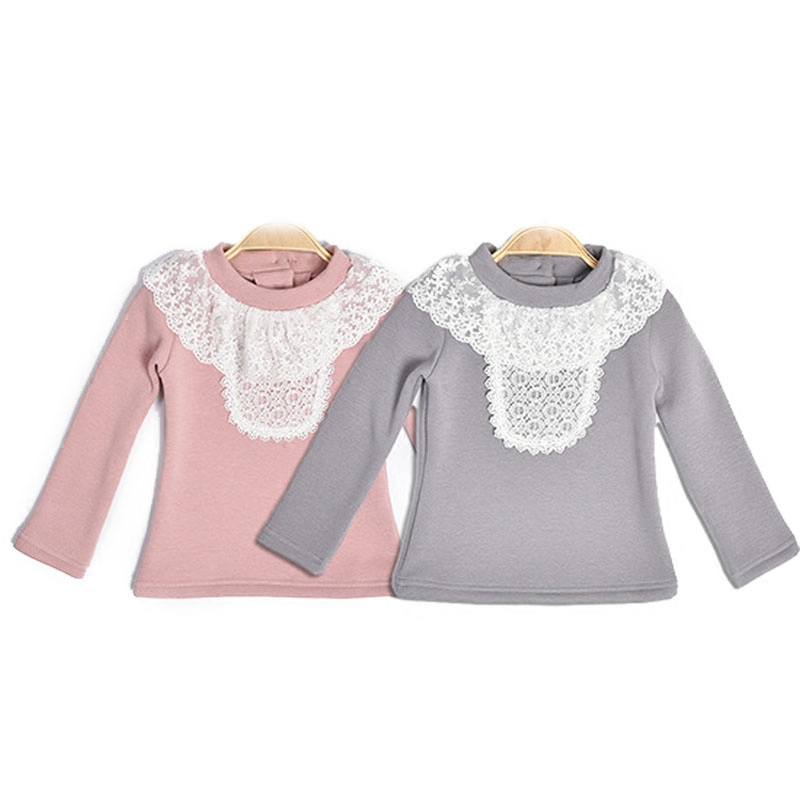 Kids 2021 Girl Baby T-Shirt 123-4-5-6 Years Old Little and Medium Child Lace Long Sleeve Top T Shirt Spring and Autumn Dress