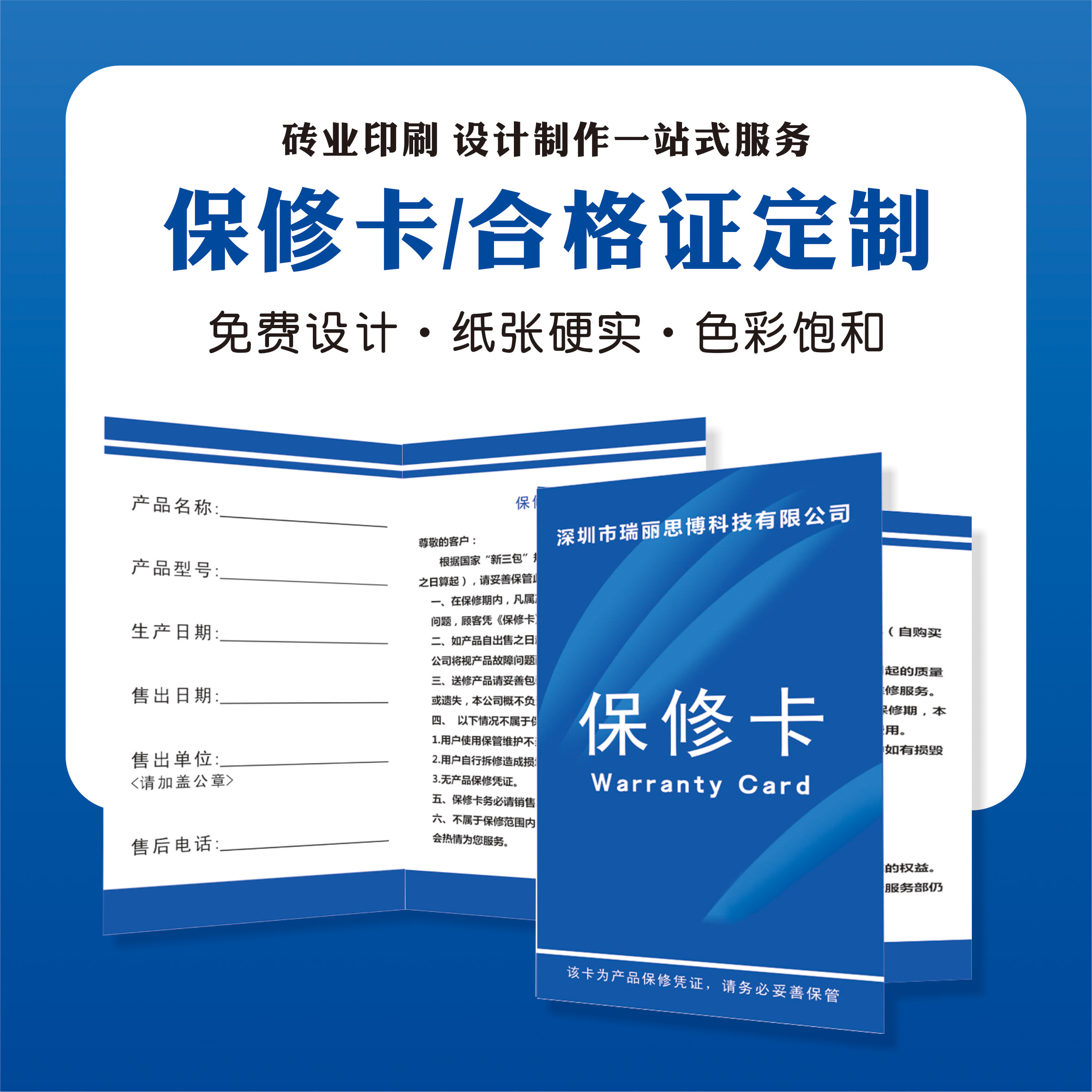 Warranty card certificate custom decorative paper card printing general instruction design business card production after-sales warranty