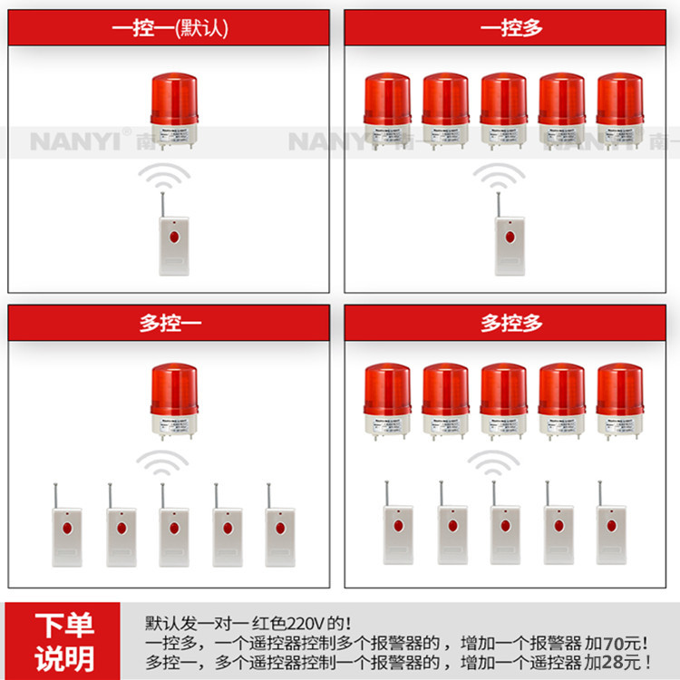 Wireless remote control sound and light alarm light 500 meters factory hotel chess and card room health club bath center flash