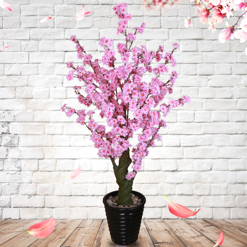 Simulation plant peach tree large floor-standing potted bonsai silk flower living room decoration decoration plastic fake flower green planting tree