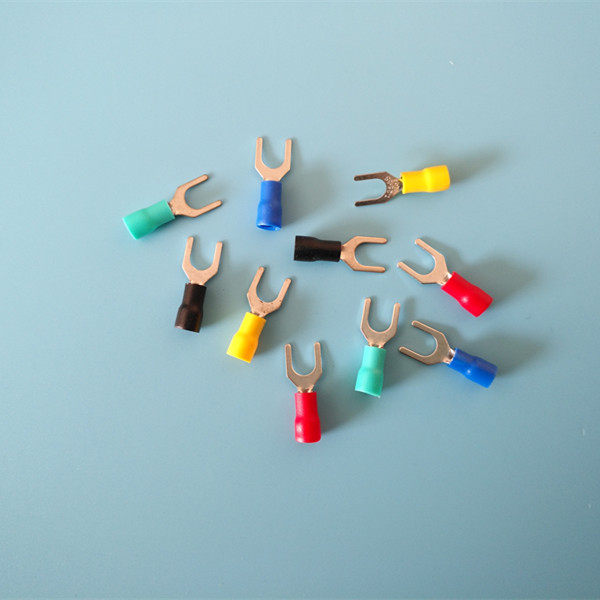 SV2-5 fork-shaped round pre-insulated round hole fork end head cold pressed copper terminal red round fork type wire ear