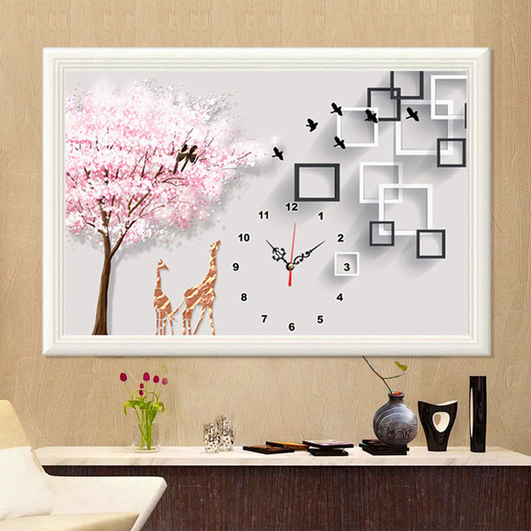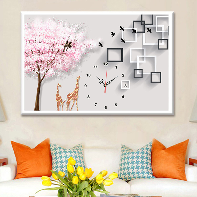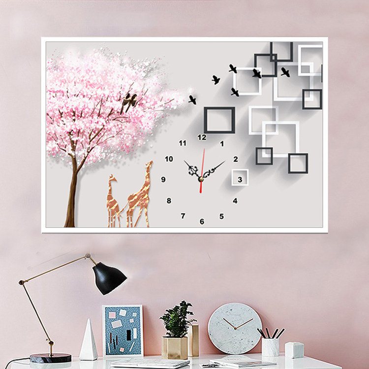 New 5D diamond diamond clock cherry tree couple deer clip cross embroidery living room bedroom with clock stone painting