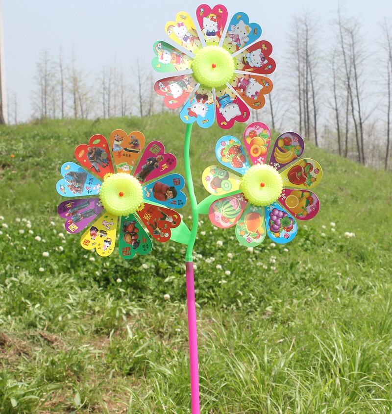 Outdoor Plastic Windmill Children Toys Three Sunflower Diy Handmade Cartoon Windmill Decoration Model Gifts