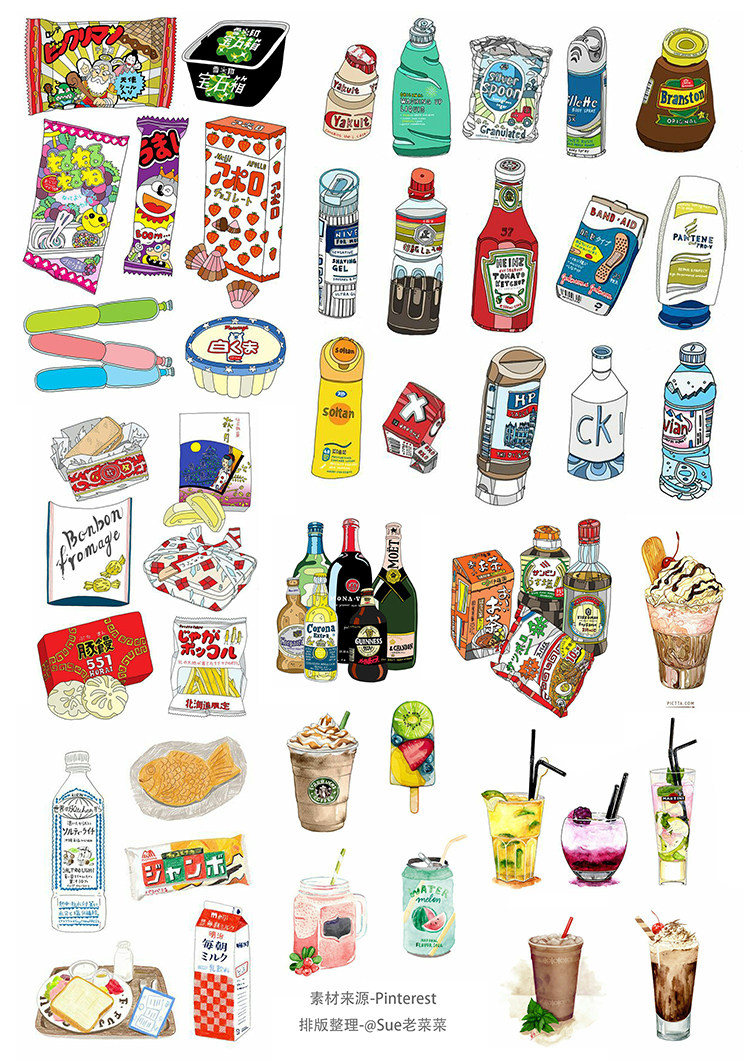 Handbook stickers homemade A4 sulfate tablet sulfate tablet food watercolor food 15