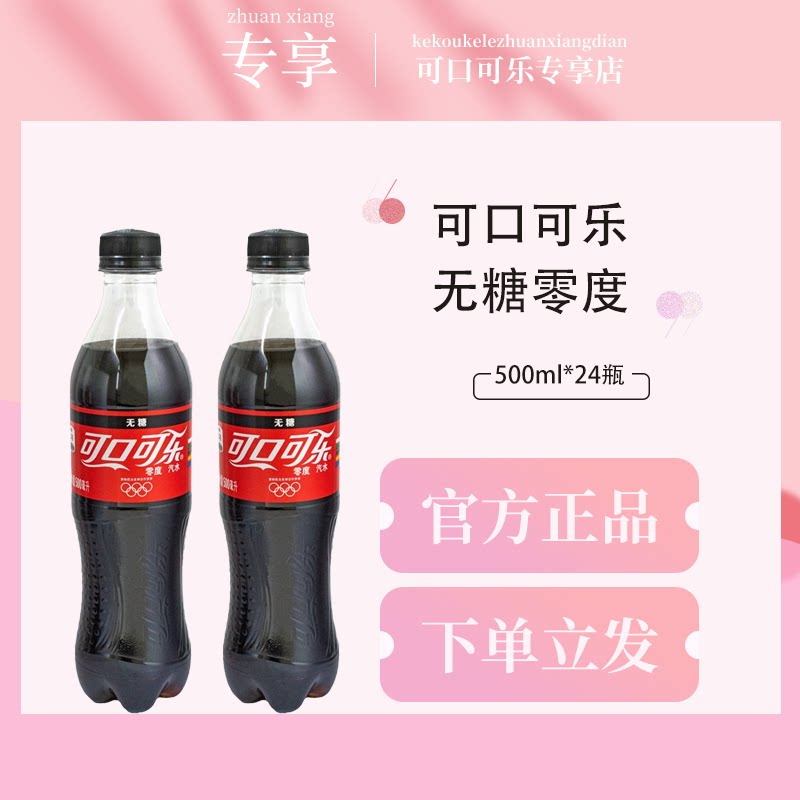 Coca-Cola Zero Coke Sugar-Free Soda Carbonated Drink 500ml*24 Bottles New and old packaging randomly placed