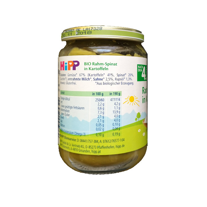 Spot German Xibao HIPP baby food supplement organic potato spinach puree 5 iron supplement 190g vegetable puree food supplement