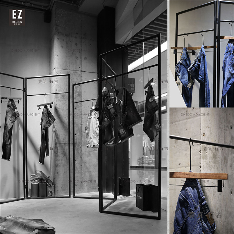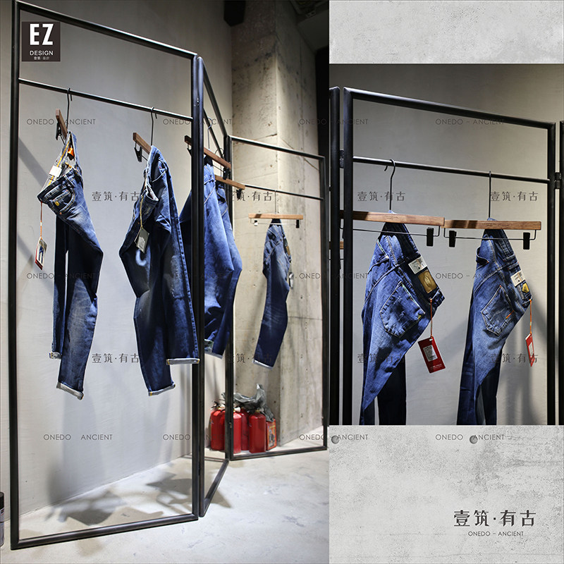 Iron Art Clothing Store Screen Rack Office Hanging Clothes Plaid Rack Floor Type Partition Folding Creativity Middle Island Display Shelf