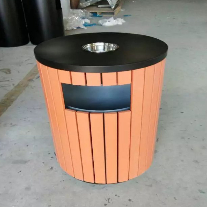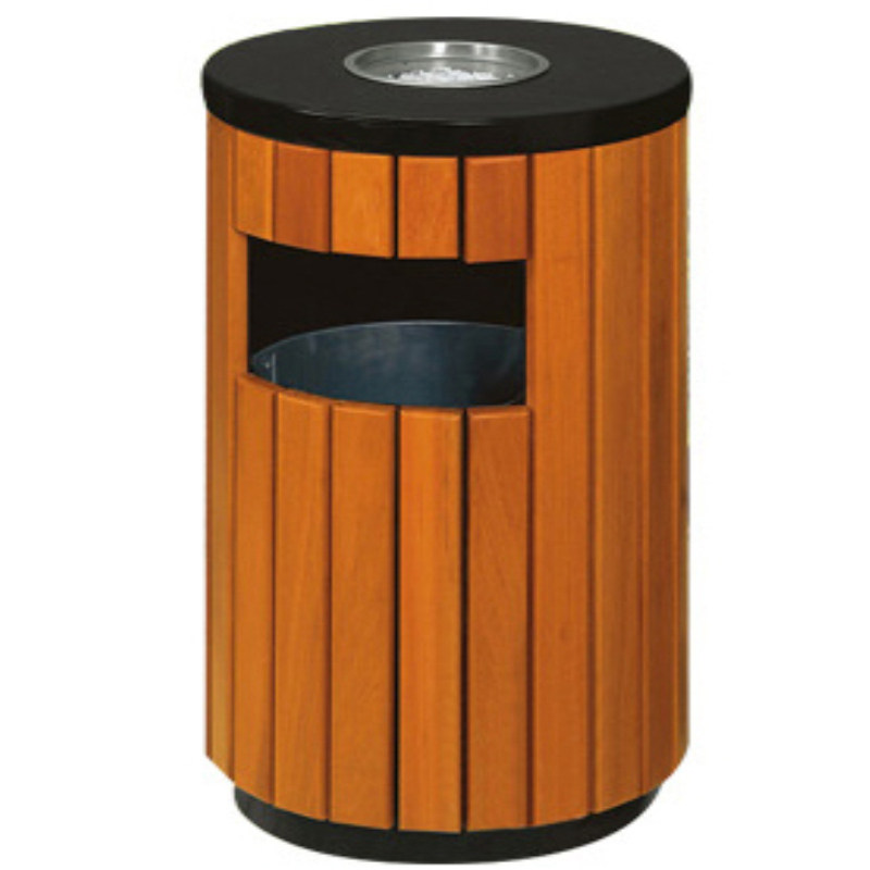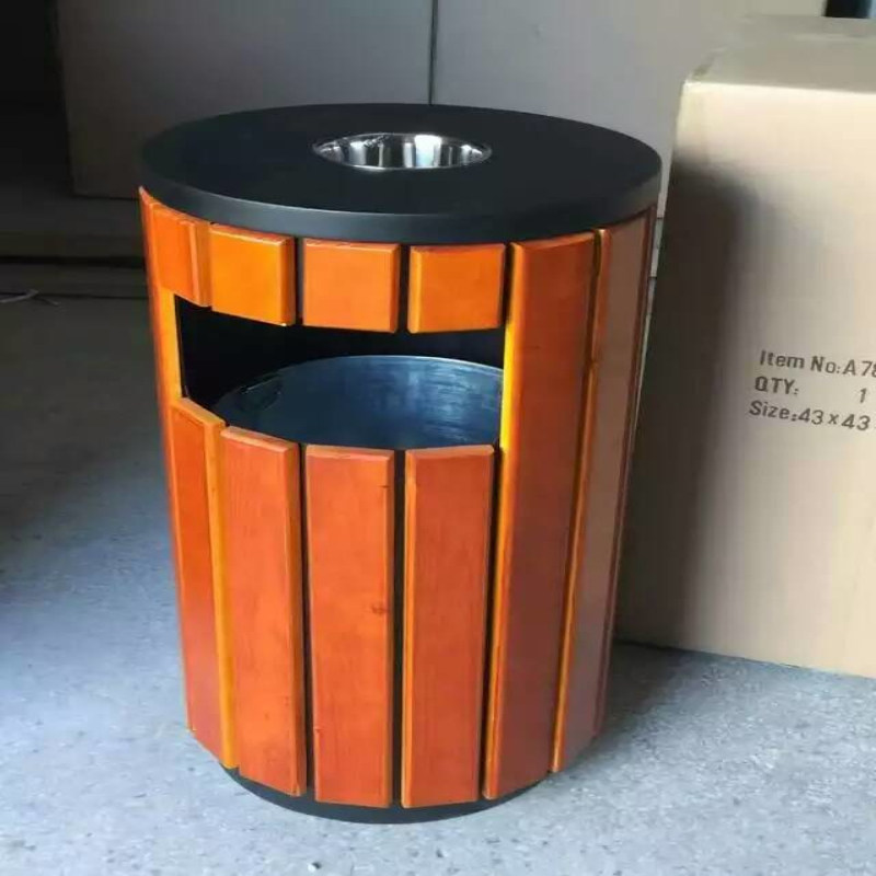 Single barrel steel wood trash can vertical round fruit leather box outdoor wooden strip sanitation trash bin