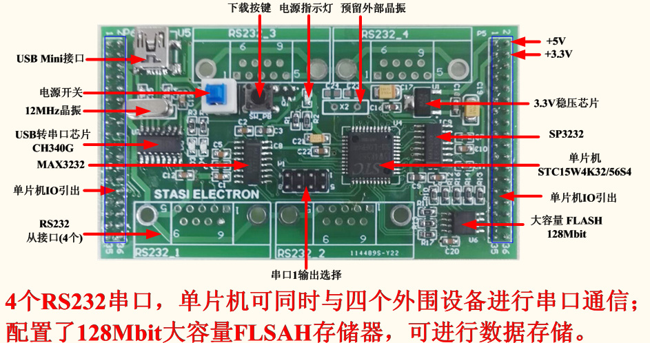 STC Single Chip Development Board Multi Serial Port 4 Serial Port Large Capacity FLASH External Memory W25Q128 -Taobao